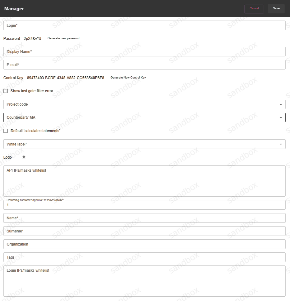 Dropayment platform contains integrated calculation system to reflect the tariffication between business process partners. Calculation happens on each level, from dealer to merchant. Bank fees are calculated for tariffication and settlement, but statements for settlement with the bank are not provided by the system. Instead, the system calculates statements per Merchant and indicates which exact amount should be received from the bank. Statement is individually generated for each manager or each merchant of this manager. Statement date is called business day. Statement for business day contains all projects for chosen manager. Statements will be calculated for manager if such option is enabled. If statement should be calculated, enable the Default calculate statements flag in manager account details. If this option is not enabled, statements setting in projects of exact manager will be unavailable and statements are not calculated.