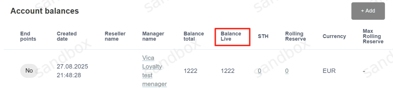 First balance is funded by sale transactions and defunded by payout transactions and is set up for USD currency, also Merchant rates applied for sale transactions. Second balance has override for sale transactions which will deduct balance with amount calculated from manager rate plan.