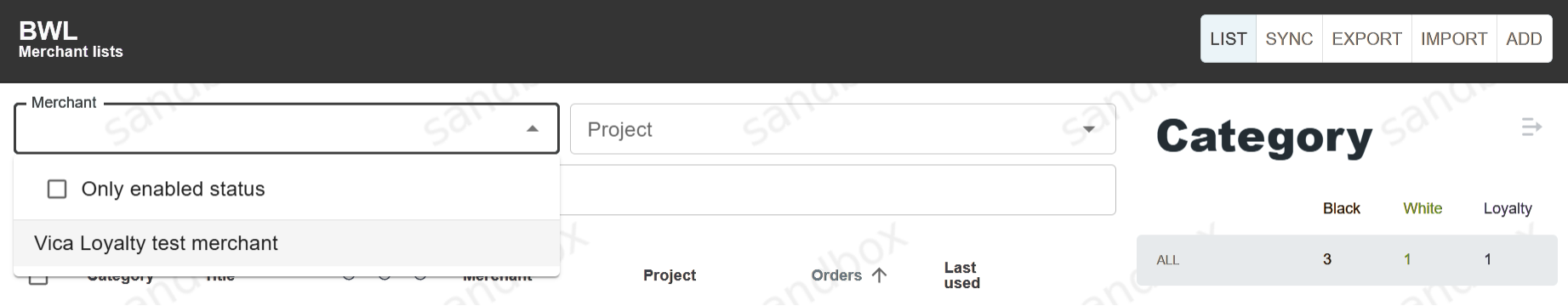 Select Merchant or Manager to switch between adding BWL list to Merchant or Manager.